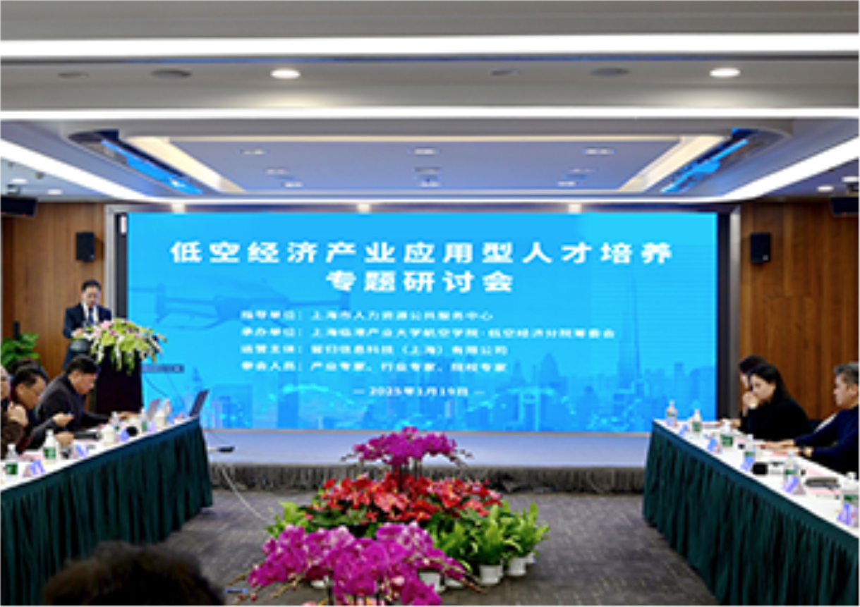 2025-01-202025年1月19日下午,在上海市人力资源公共服务中心的指导下,由上海临港产业大学低空经济分院(筹)承办,并由留归信息科技(上海)有限公司负责运营,主题为“低空经济产业应用型人才培养”的研讨会在上海人才大厦四楼举行。来自上海无人机产业协会、上海人工智能技术协会等行业协会,上海浦东国际机场、上海华为、圆通货运等企业,以及中国民航科学技术研究院、上海临港产业大学、上海中侨职业技术大学等院校的二十余位行业专家、企业领袖和高校学者共同参加了此次研讨会。